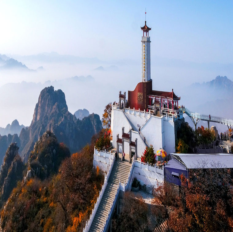 這是狼牙山棋盤陀峰頂的“狼牙山五勇士紀念塔”(2017年10月27日無人機拍攝)。新華社 發