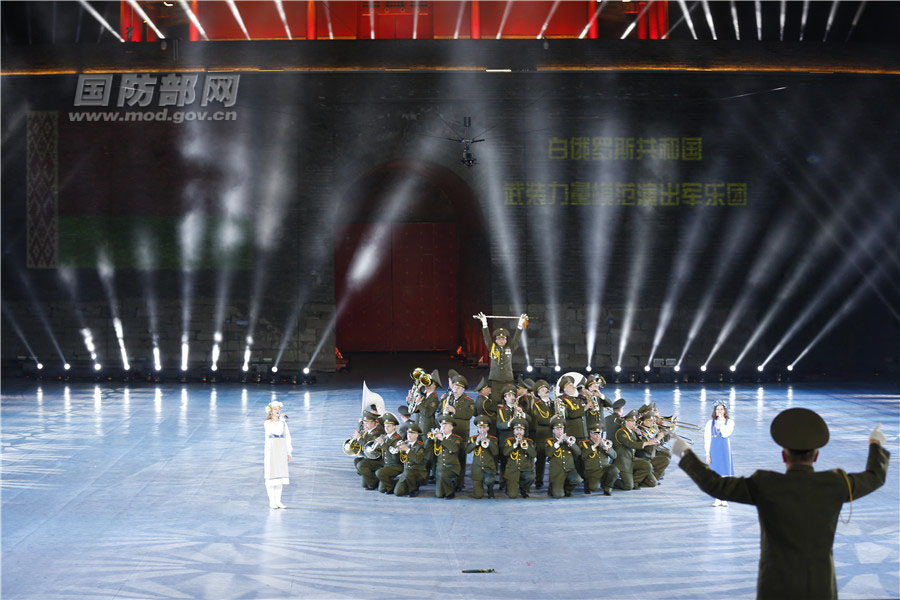 圖為白俄羅斯共和國武裝力量模范演出軍樂團在開幕式現場演奏。焦國慶 攝