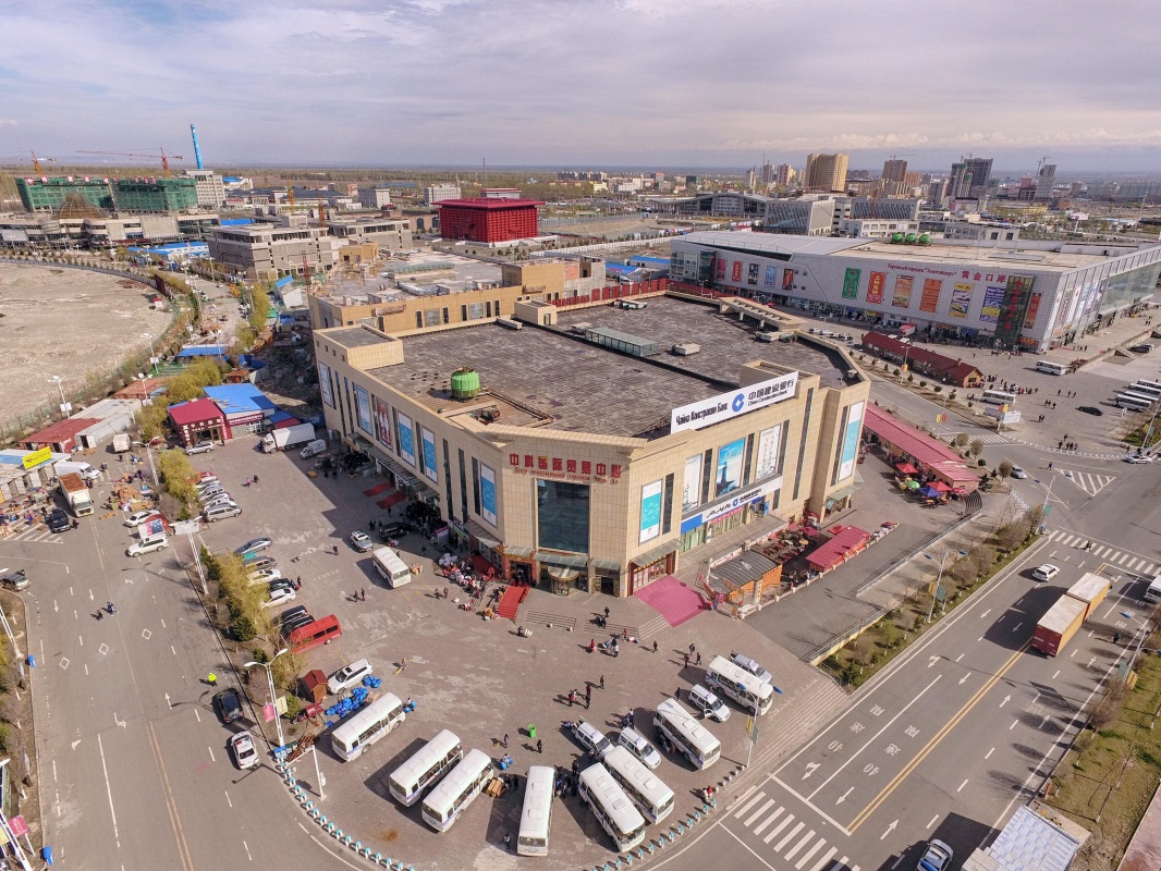 這是位于新疆伊犁中哈邊境的中哈霍爾果斯國際邊境合作中心內的中科國際貿易中心(2017年4月18日攝)。才揚 攝