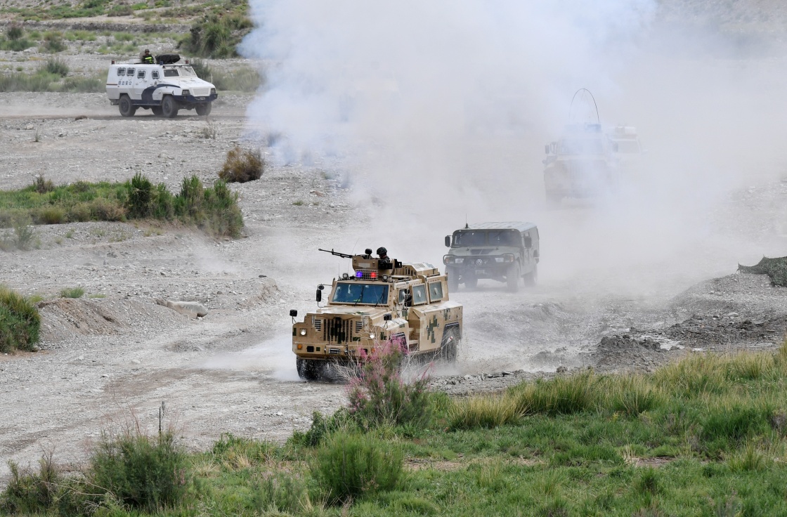 2017年6月27日,代號為“天山-3號(2017)”的上海合作組織成員國中吉邊防部門聯合反恐演習在中吉兩國邊境同時打響。王菲 攝