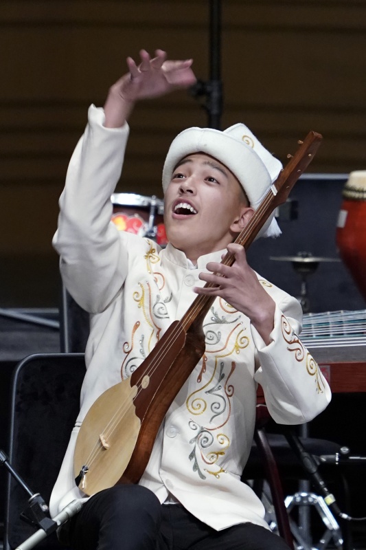 5月30日,吉爾吉斯斯坦“阿卡克”民族樂團(tuán)演員在演奏。沈伯韓 攝