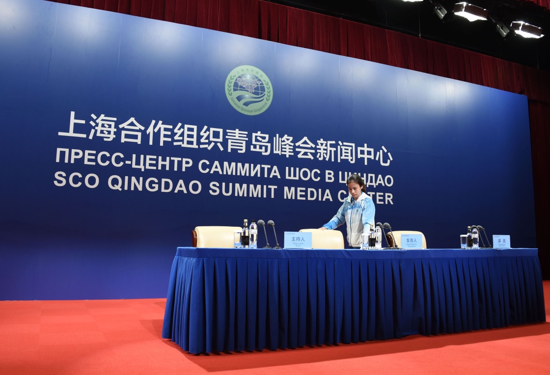 6月3日,中國(guó)石油大學(xué)(華東)學(xué)習(xí)俄語專業(yè)的志愿者曹亞楠在新聞發(fā)布廳值守。新華社記者李紫恒 攝