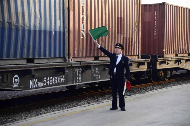 5月26日,滿載電子產品、茶葉等貨物的第3038列“青島號”中亞國際班列從山東青島膠州火車站發出,駛往哈薩克斯坦、塔吉克斯坦等國。