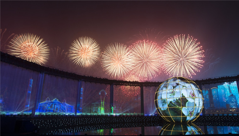 6月9日至10日,上海合作組織青島峰會在山東青島召開。這是9日晚在青島舉行的《有朋自遠(yuǎn)方來》燈光焰火藝術(shù)表演。新華社記者 李學(xué)仁 攝