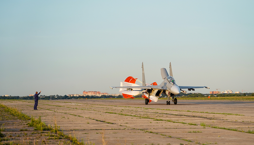 8月13日,參賽的中國空軍殲-16戰(zhàn)斗機降落在俄羅斯佳吉列沃機場。 新華社發(fā) 許毅 攝