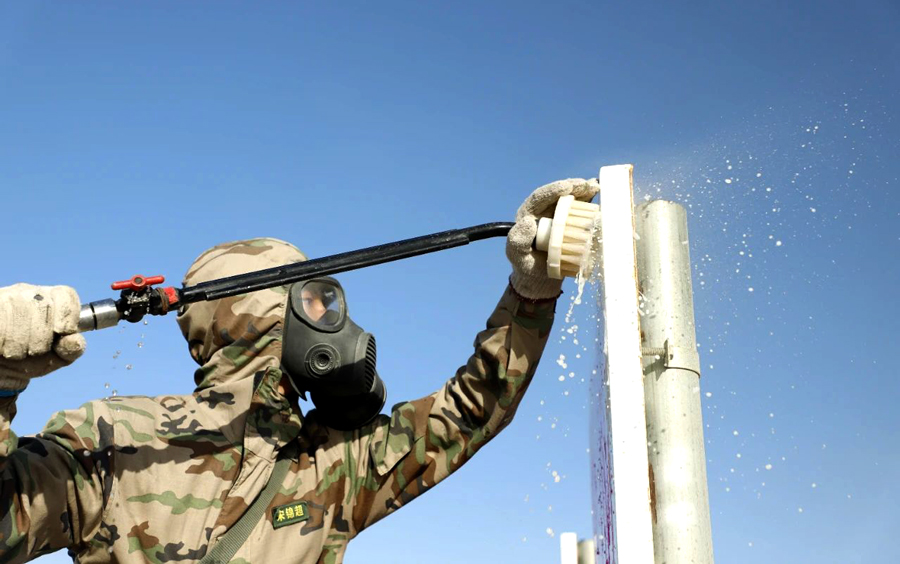 參賽隊正在進行快速洗消訓練 聶凡淳 攝