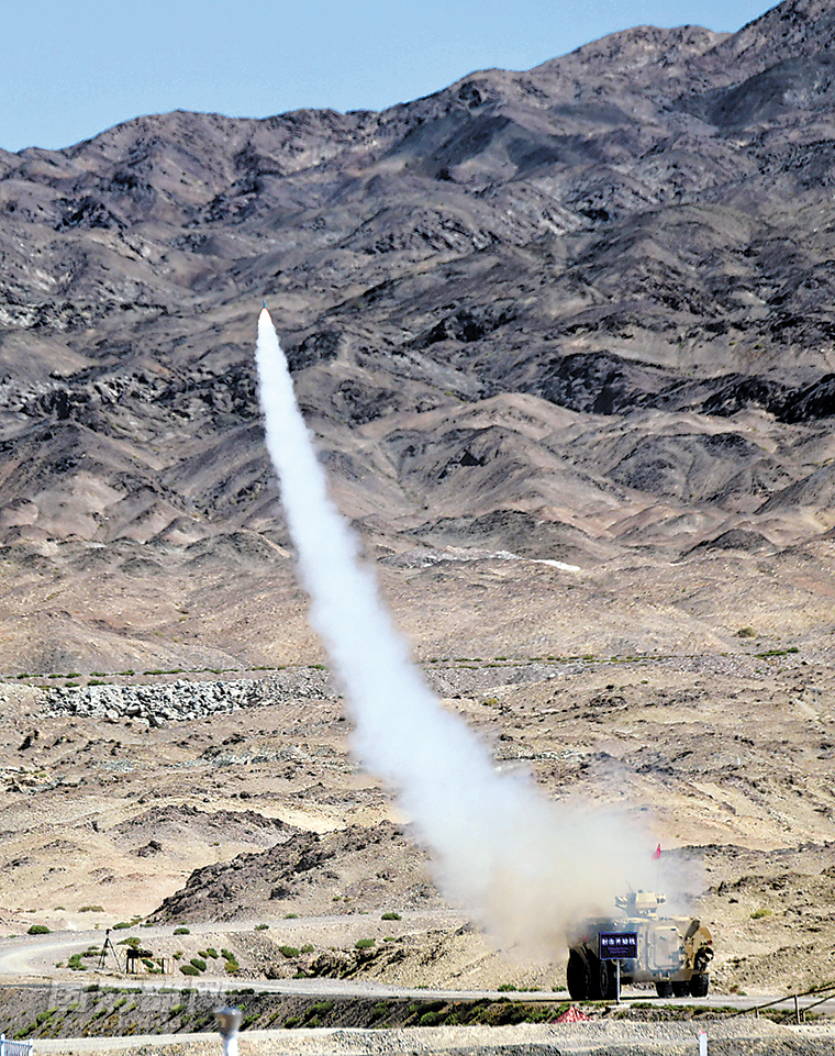 在“晴空”項目比賽中,中國參賽隊陸軍代表隊發射導彈射擊靶標。 解放軍報記者 王俊 攝