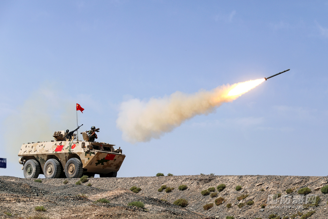 中國參賽隊員在戰車上發射便攜式防空導彈。 張嘉成 攝