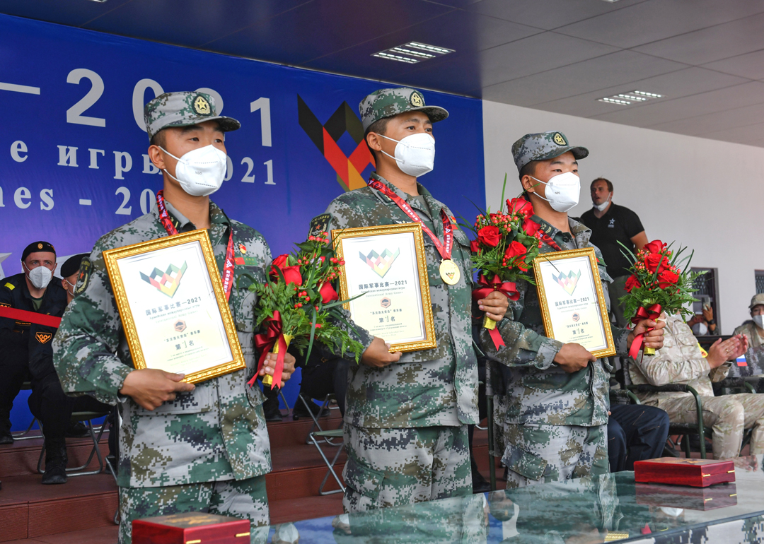 至此,“蘇沃洛夫突擊”項目單車賽3輪12個車組的比賽全部完成,中國隊以單車賽總成績47分25秒72排名第一,打破賽事記錄,俄羅斯隊、白俄羅斯隊位列第二、三名。中國參賽隊第3車組、第1車組、第2車組三個車組包攬“優勝車組”前三名,中國參賽隊車長張洋、炮長田志龍、駕駛員李夏穎,分別被評為“最佳車長”“最佳炮長”“最佳駕駛員”。