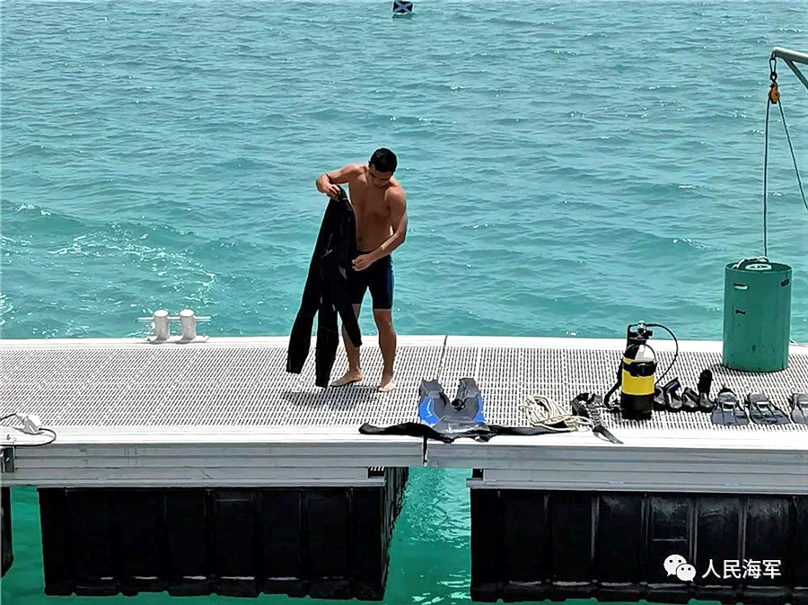 當日進行的“對遇險水面艦艇提供救援”課目,共包含八個步驟,總體可分為水下破障、水下堵漏、管路連接和水下切割四個大項。中方參賽隊以18分51秒的成績,位伊朗參賽隊之后,暫列第二名。