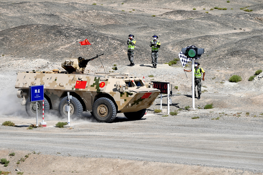 9月1日,“國際軍事比賽-2021”“晴空”便攜式防空導彈班組項目綜合賽在新疆庫爾勒賽區舉行,中國隊摘得第一名。至此,“晴空”項目所有比賽結束,中國隊獲全部比賽第一,并奪得團體冠軍。這是參加綜合賽的中國參賽隊到達終點。 新華社記者 張永進 攝