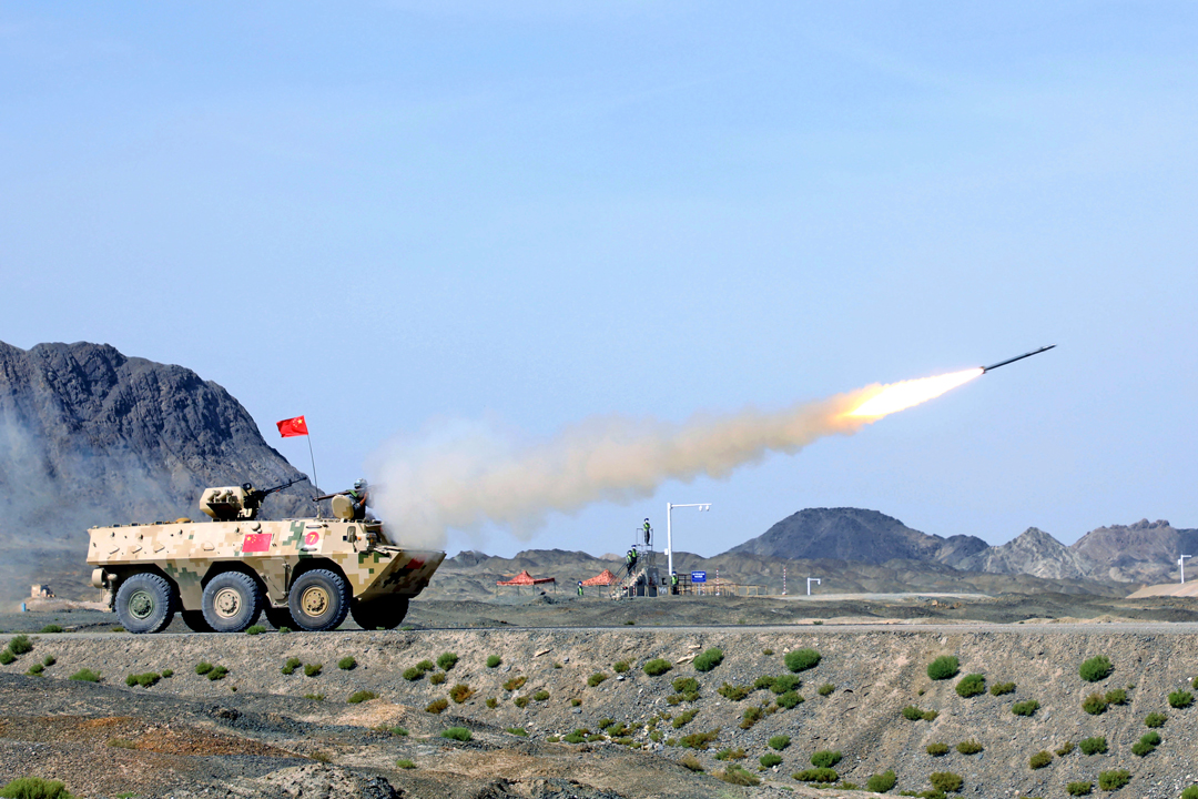9月1日,“國際軍事比賽-2021”“晴空”便攜式防空導彈班組項目綜合賽在新疆庫爾勒賽區舉行,中國隊摘得第一名。至此,“晴空”項目所有比賽結束,中國隊獲全部比賽第一,并奪得團體冠軍。這是參加綜合賽的中國參賽隊發射導彈。 新華社發 張嘉成 攝