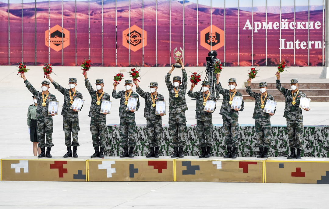 14天的賽程,來(lái)自四大洲、七個(gè)國(guó)家的182名參賽隊(duì)員進(jìn)行了激烈角逐,共產(chǎn)生8個(gè)單項(xiàng)第一名,3個(gè)團(tuán)體第一名,打破5項(xiàng)賽事紀(jì)錄。其中中國(guó)參賽隊(duì)包攬3個(gè)項(xiàng)目的團(tuán)體第一名,包攬庫(kù)爾勒賽區(qū)所有金牌。在響徹全場(chǎng)的掌聲中,賽事組委會(huì)宣布并頒發(fā)了“國(guó)際軍事比賽-2021”“蘇沃洛夫突擊”“晴空”和“安全環(huán)境”3項(xiàng)比賽的團(tuán)體獎(jiǎng)。