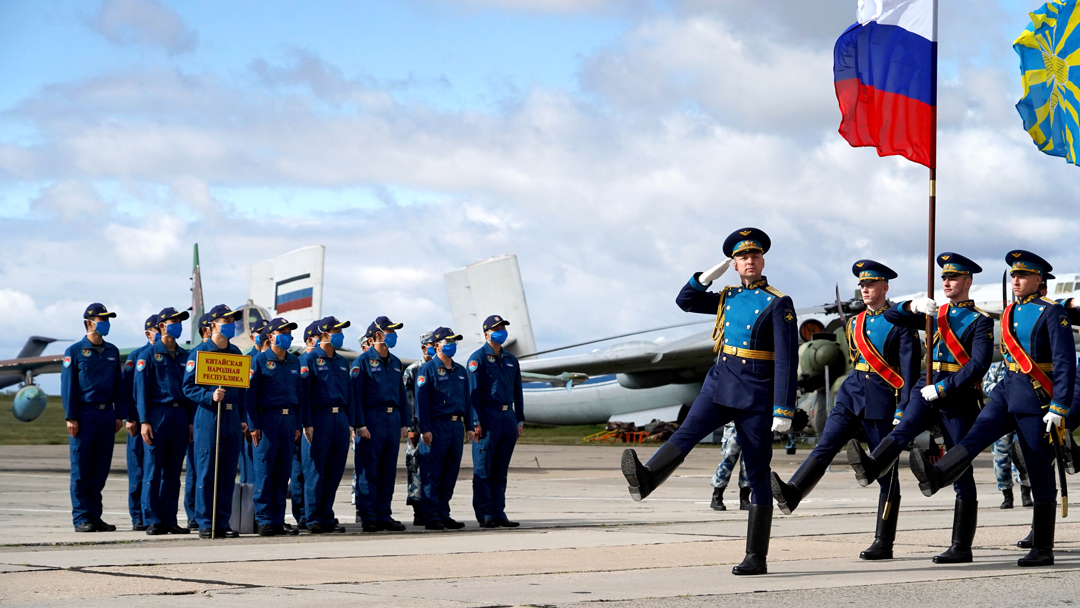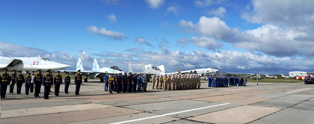 9月4日,在俄羅斯梁贊州佳吉列沃機場,中國空軍代表隊參賽方陣出席“國際軍事比賽-2021”“航空飛鏢”項目閉幕式暨頒獎儀式。 新華社發 許毅 攝