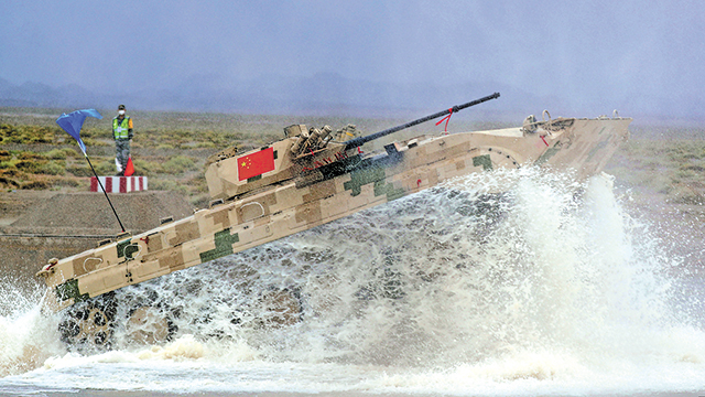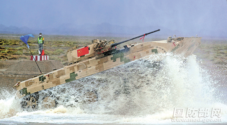 中國戰車通過涉水場。羅興倉攝