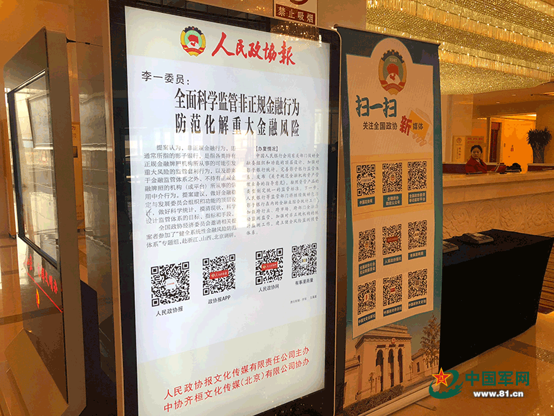 記者在現場看到,全國政協也有自己的新媒體矩陣啦!在一樓大廳,擺放于顯眼處的顯示屏和展板引起了記者的注意。展板上,中國政協網、全國政協微信公眾號、全國政協委員移動履職平臺等新媒體位列其中,拿出手機,輕掃二維碼,即可關注9個全國政協的新媒體平臺。一旁的電子顯示屏則滾動播報以往政協委員提案的辦復情況。