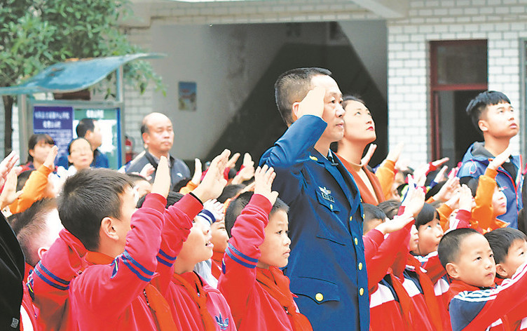 2017年10月,李中華在陜西省旬陽縣與孩子們一同參加升旗儀式。郭海洋攝