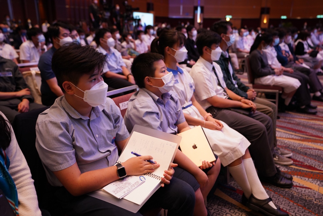 活動開始后,全體起立奏唱國歌。其后,林鄭月娥發表致辭表示,國家航天事業近年取得歷史性進展,令人振奮。我國從事航天事業的科學家都是熱愛祖國、無私奉獻、艱苦奮斗、力求國家科技自主的愛國者。雖然我們不可能都成為科學家或杰出人士,但我們都應該有一份以國家發展為榮、以中國人身份為傲、為人民服務、迎難而上的精神。她希望參與此次活動的香港青年,能通過活動得到啟發,懷著開拓未來的夢想,學習航天員的精神,在科研路上不怕失敗,勇敢探索,成就理想,在國家和香港的未來發展路上發光發亮。
