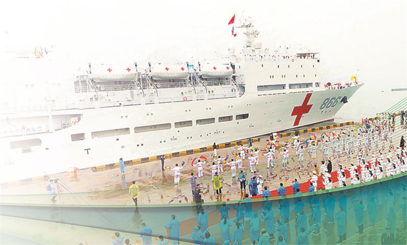 4月21日,天津市和平區(qū)干部群眾歡迎海軍“和平方舟”號醫(yī)院船來津。李勝利 攝