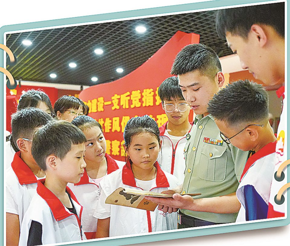 近日,武警天津總隊執(zhí)勤第二支隊某中隊邀請駐地中小學(xué)生代表走進(jìn)軍營,參觀中隊榮譽室。史冰 攝