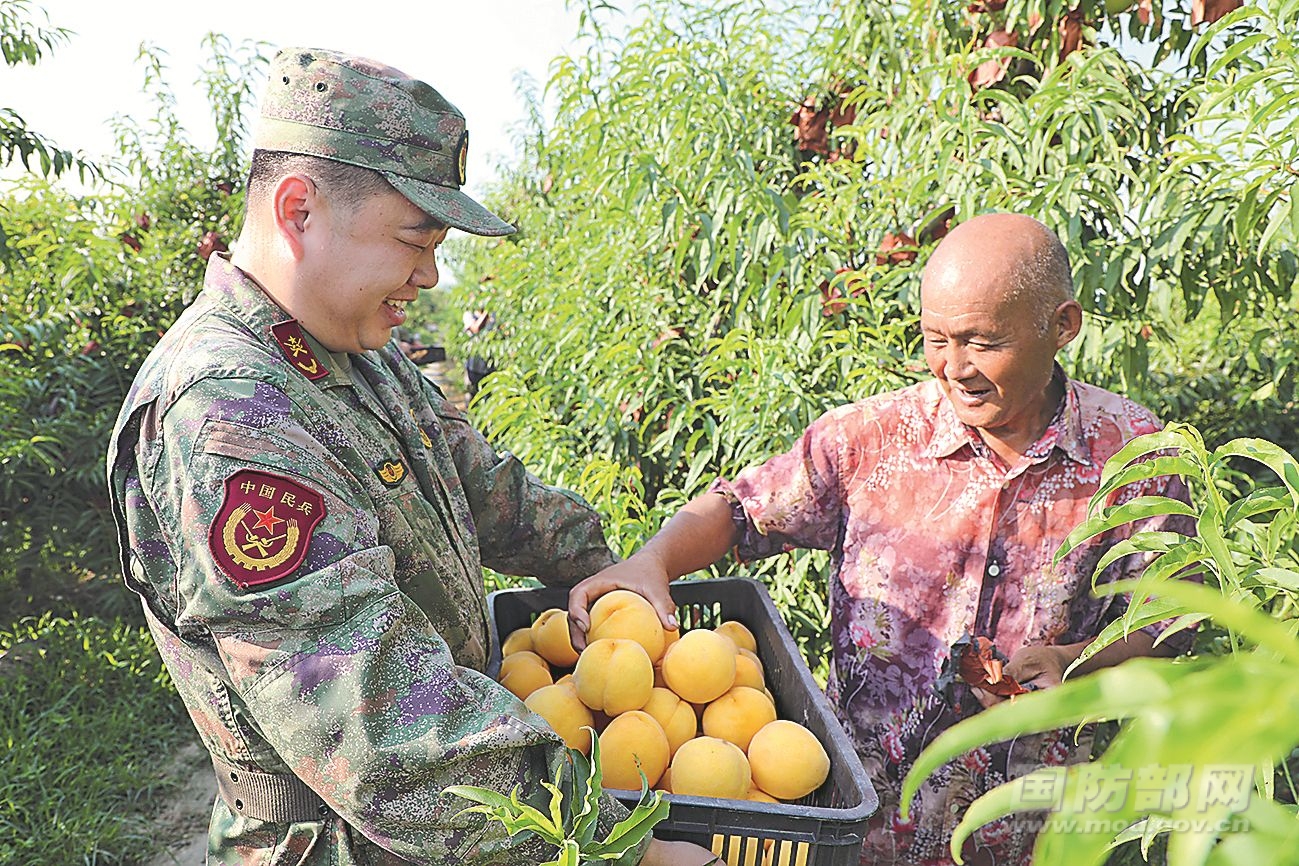 江蘇省射陽縣人武部組織民兵幫助果農采摘黃桃