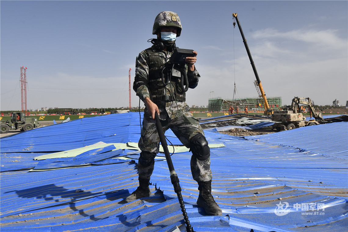 陸軍第76集團軍某工程防化旅利用生命探測儀搜尋廢墟中的生命跡象。王連彬 攝