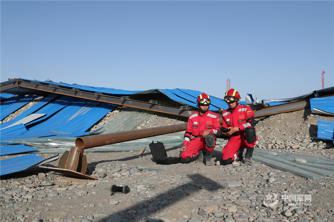 救援官兵正在廢墟中利用紅外探測儀尋找生命跡象。王連彬 攝
