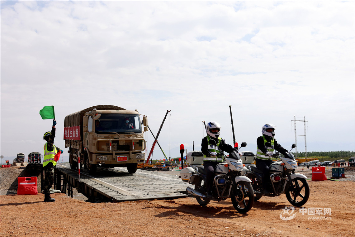 甘肅省軍區(qū)警備糾察導調(diào)救援部隊和支援部隊車輛順利通過臨時架設的橋梁。王連彬 攝