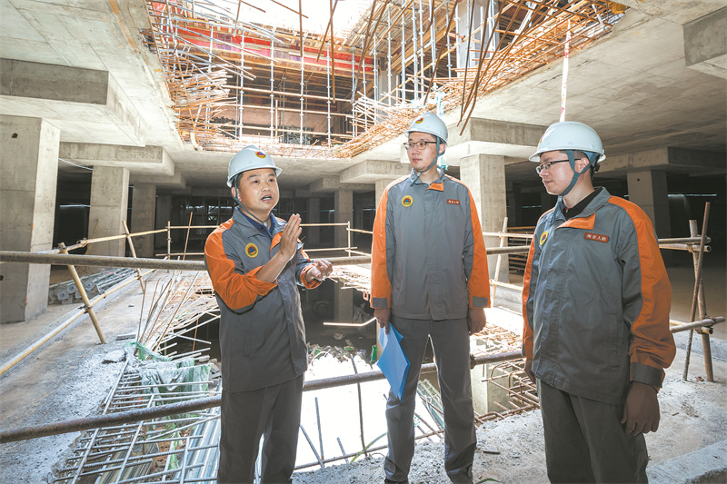 在江北新區中心區地下空間項目建設現場,人防部門工作人員檢查防護工程建設質量。石 偉攝