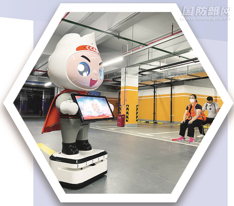 在空襲背景下,人員驟然進入相對陰暗、潮濕的地下空間,心理上一時難以適應。上海市民防科學研究所研制的民防科普機器人,在人防工程內講解人員掩蔽注意事項,與居民進行互動對話,成為普及防護知識、穩定群眾情緒的好幫手。此前,該市民防辦還出動無人機,進行普通話、上海話、英語“三語”廣播,配合地面人員引導參演市民有序疏散。