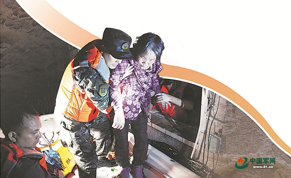 武警湖南總隊岳陽支隊官兵轉(zhuǎn)移平江縣被困群眾。雷明亮攝