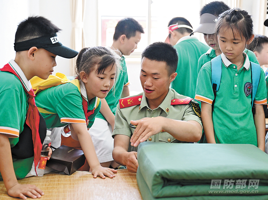 “六一”國際兒童節到來之際,武警南昌支隊某部組織軍營開放日活動。圖為學生觀看戰士整理內務。 許書燦 攝