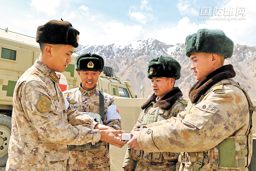醫(yī)護人員為小散遠點官兵發(fā)放藥物。郝宣 攝