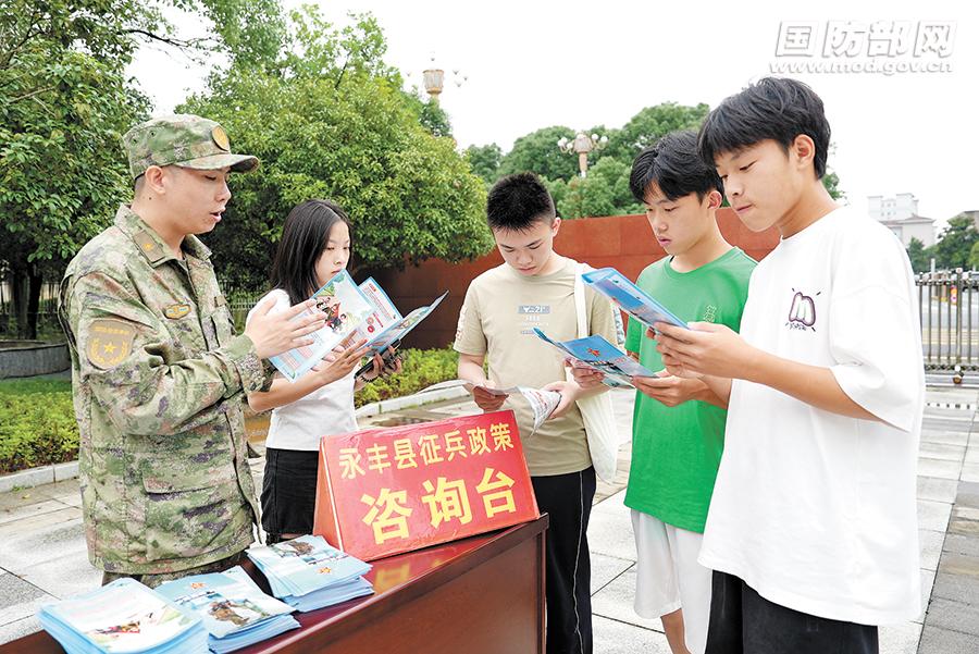 6月中旬,江西省永豐縣人武部組織征兵宣傳小分隊進校園開展宣傳活動。周莎梅 攝