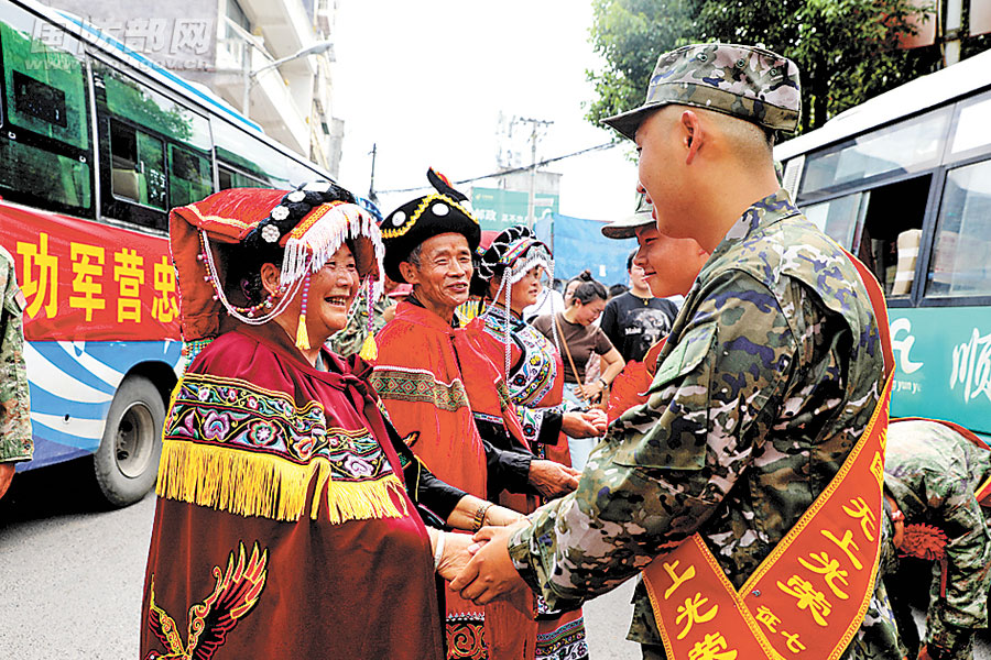 貴州省畢節市七星關區少數民族群眾來到送兵現場歡送新兵