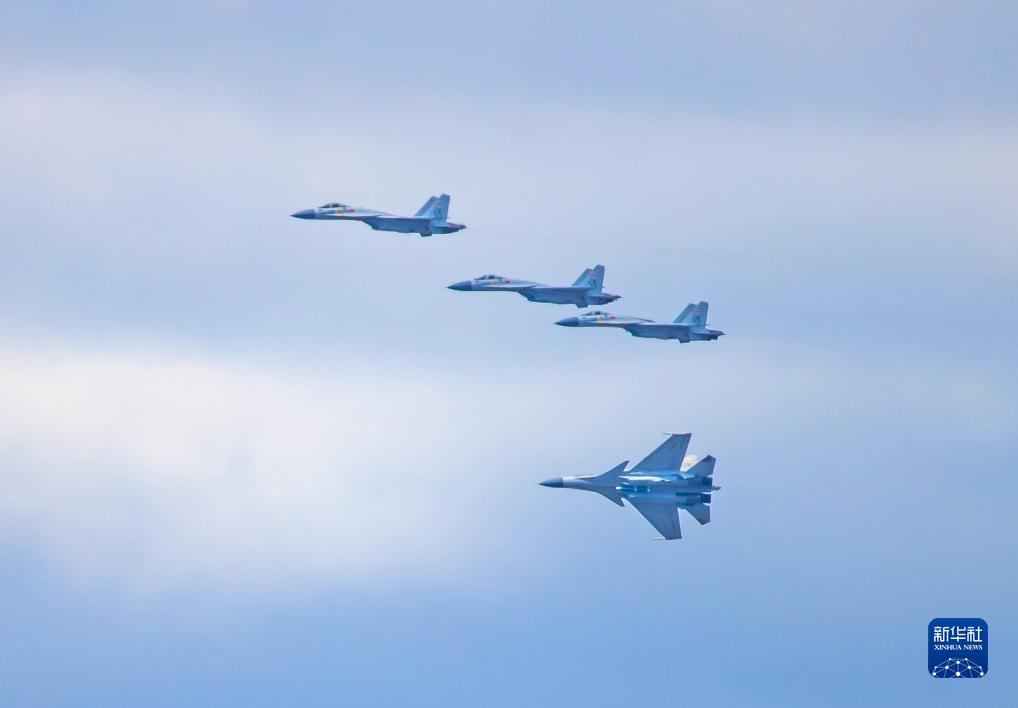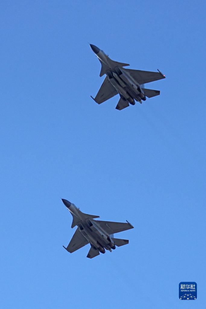 海軍航空大學某基地組織艦載機飛行學員駕駛戰機飛赴預定空域,開展飛行訓練(2023年8月23日攝)。新華社發(姜濤 攝)