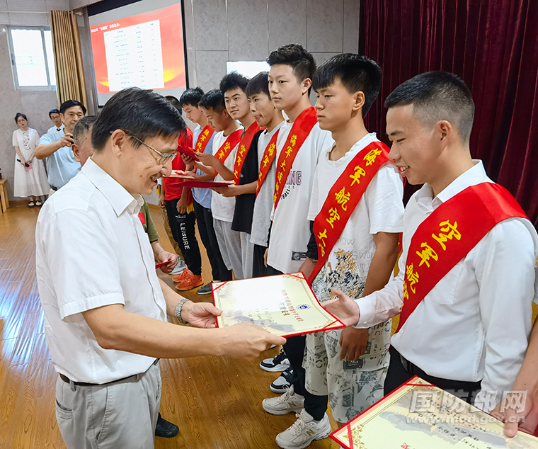 校長(zhǎng)林斗宏為考上軍校的學(xué)生頒發(fā)榮譽(yù)證書(shū)。陳結(jié)根 攝