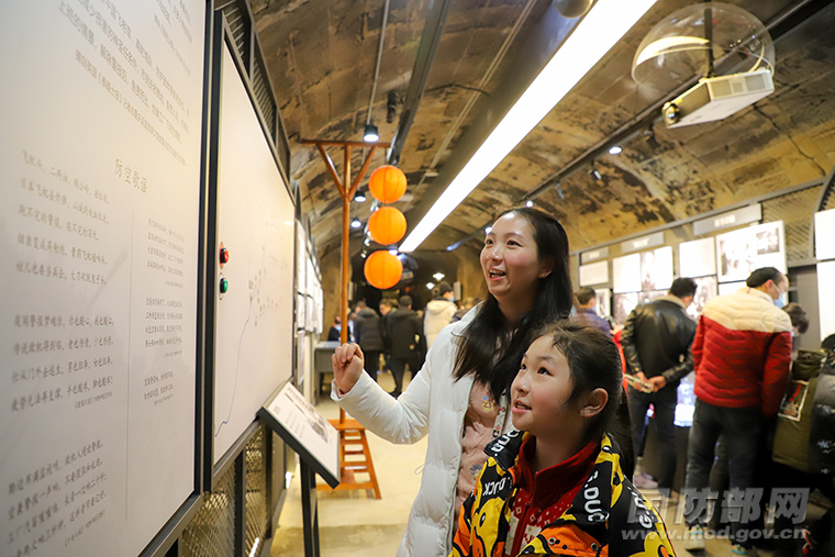 重慶市依托老舊防空洞,建成一批國防教育場所。圖為2月12日,在十八梯大隧道遺址紀念館內,一對母女在閱讀抗戰時期的《防空歌謠》。 王誠潔 攝