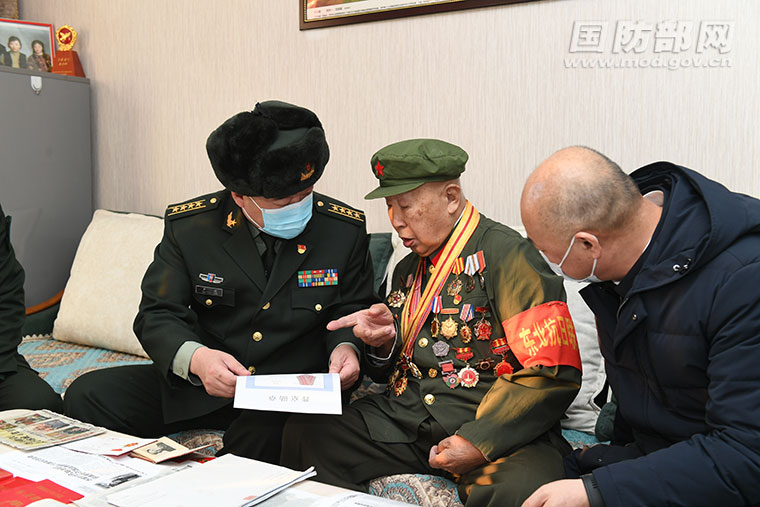 哈爾濱市軍地領導尋訪探望東北抗聯老戰士王濟堂。常智科攝