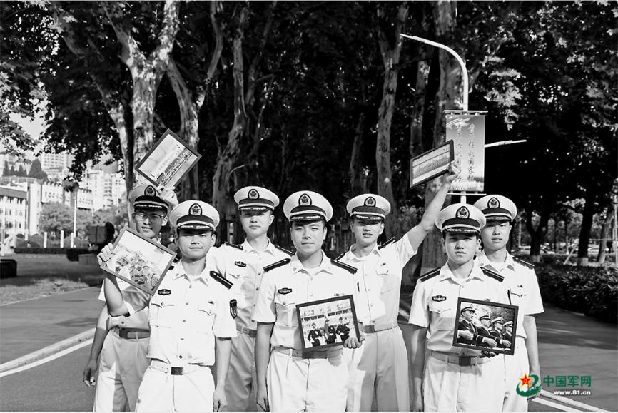 海軍工程大學(xué)部分畢業(yè)學(xué)員展示軍校留影。趙梓岍攝
