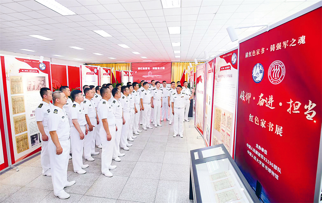 炎炎夏日,海軍某潛艇支隊舉辦廉政家書展。一封封革命前輩的紅色家書,一張張寫自大洋深處的信箋,吸引官兵細細品讀、久久沉思。