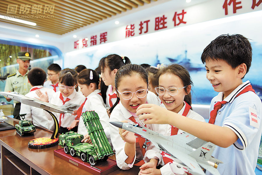 9月中旬,安徽省合肥市軍地聯合開展“國防教育進校園”活動,通過觀摩課目演示、參觀內務設置等,增強學生們的國防意識。