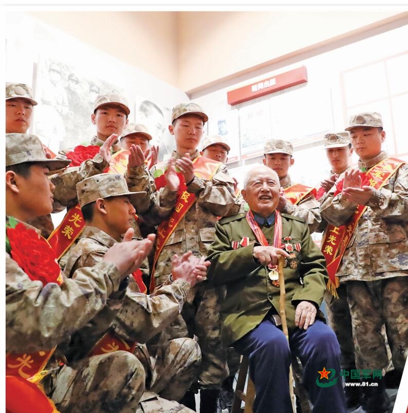 濮陽市抗美援朝老兵馬鴻為新兵講戰斗故事。戴丹華攝