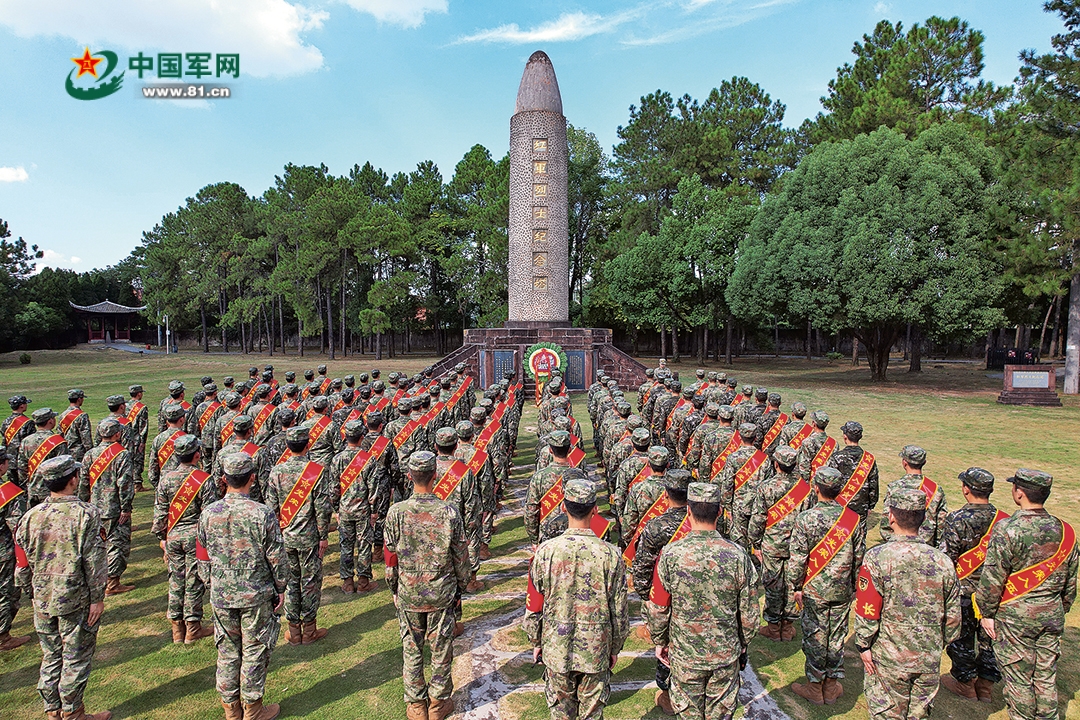 瑞金市人武部組織預定新兵在葉坪革命舊址紅軍烈士紀念塔開展現地教學。葛振奇攝