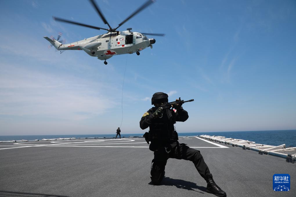 這是6月1日,中國海軍“和平方舟”號醫(yī)院船起航前組織特戰(zhàn)隊員索降訓(xùn)練。新華社發(fā)(劉志磊 攝)