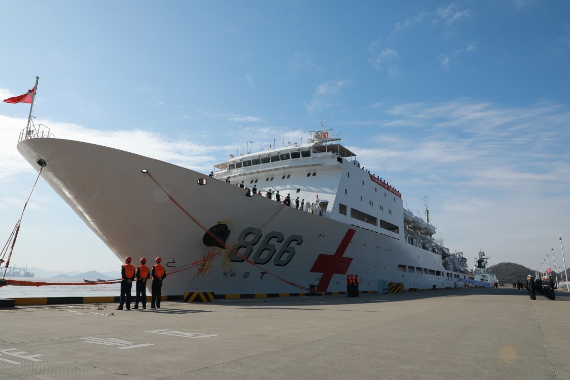 1月16日,中國海軍“和平方舟”號醫院船圓滿完成“和諧使命-2024”任務,順利返回浙江舟山某軍港。新華社記者 李秉宣 攝
