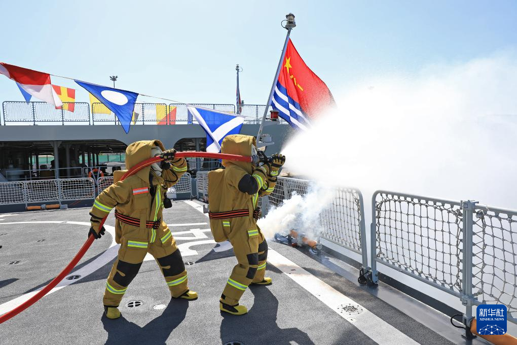 4月2日,在莫桑比克訪問的中國海軍第45批護航編隊臨沂艦官兵進行課目展示。新華社發(王遠方攝)