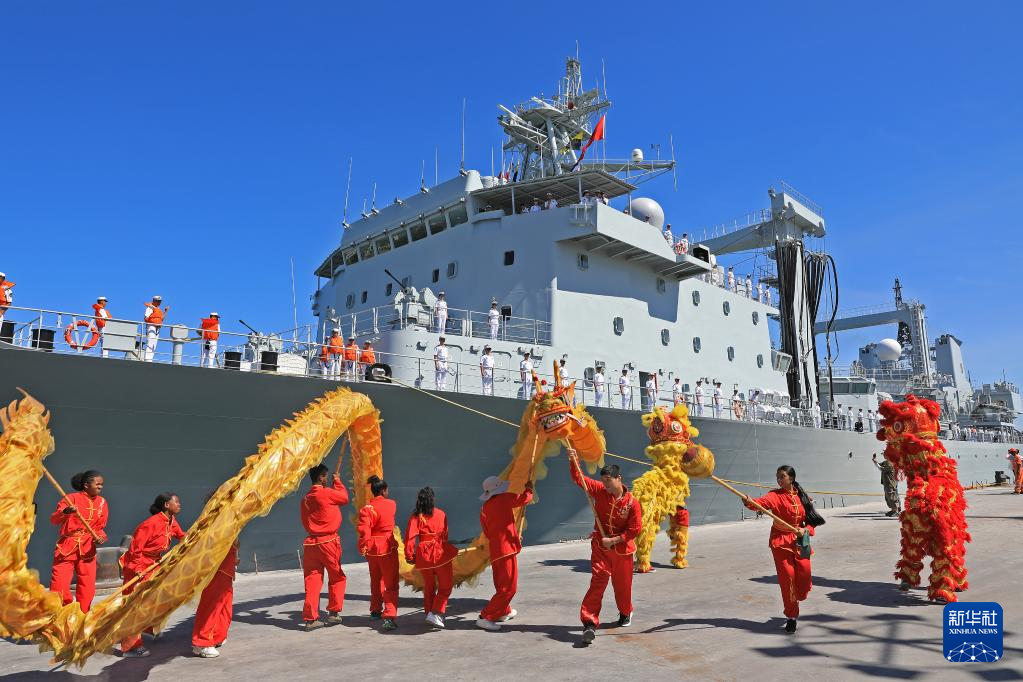 歡迎儀式上,馬方組織了舞龍、舞獅和當地特色舞蹈表演,學生代表為編隊指揮員獻上鮮花。儀式結束后,歡迎人群分批次登艦參觀。