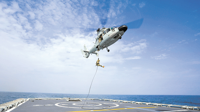 我海軍第46批護航編隊在亞丁灣海域組織跨晝夜飛行訓練