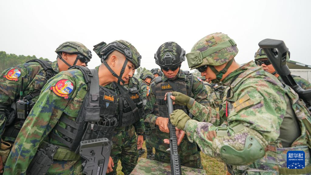3月27日,在中泰“藍色突擊-2025”海軍聯(lián)合訓練中,中泰雙方隊員進行輕武器射擊交流。新華社發(fā)(賈成露 攝)